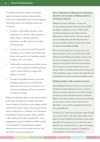 Under this initiative, the following activities were Mahadevi Narayan Lokhande, a 38-year-old Foundation through a WhatsApp query. Reliance