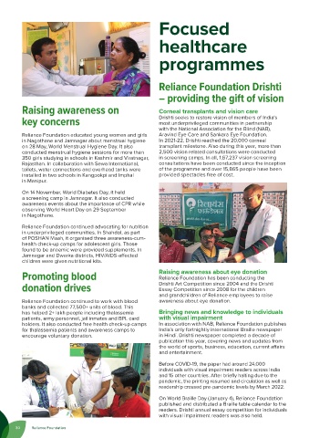 holders. It also conducted free health check-up camps In association with NAB, Reliance Foundation publishes