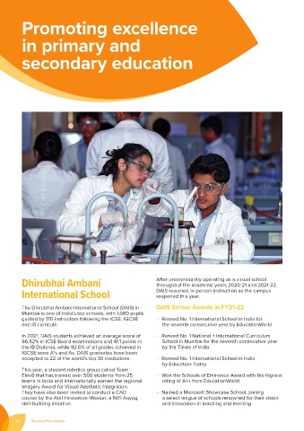 The Dhirubhai Ambani International School (DAIS) in DAIS School Awards in FY21-22