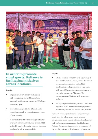 100 Sports for Development Reliance Foundation | Annual Report 2022-23 101