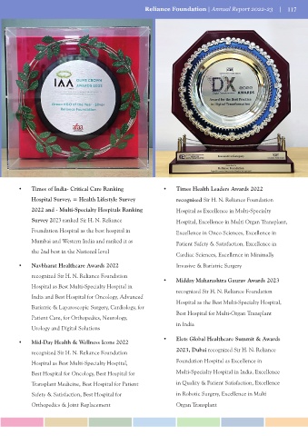 through the year: Cross Society. Survey 2023 ranked Sir H. N. Reliance Hospital, Excellence in Multi Organ Transplant,