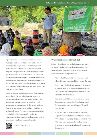 Smart Agricultural functionaries for effective implementation of plans. during the year. The activities were carried out by Reliance Foundation has worked towards improving