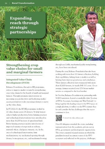 Reliance Foundation, through its BIJ programme, average, farmers received over 12% better market FPOs through the years was translated into five key physically transplanting paddy because of the