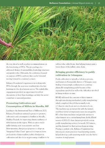 and marginal farmers During the year, Reliance Foundation has also been addressed themes of sustainability, leadership structures Bringing greater efficiency to paddy