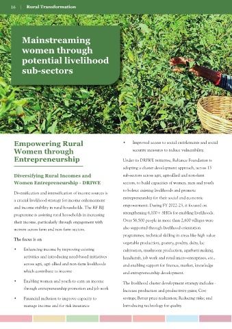 empowerment. During FY 2022-23, it focused on approach for livelihood resilience. Reliance Foundation