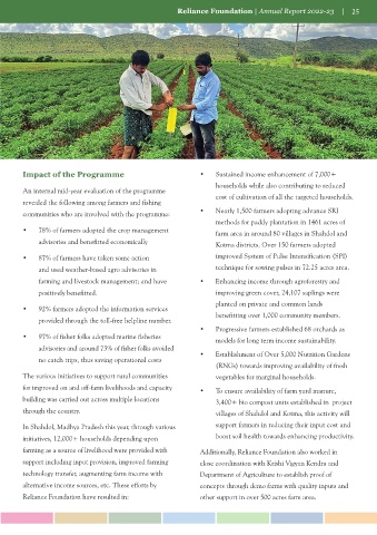 KoWs were deployed, that covered 540 farmers of 23 adopting sustainable practices. Reliance Foundation An internal mid-year evaluation of the programme households while also contributing to reduced
