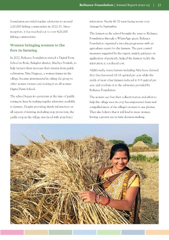 village. Reliance Foundation takes pride in being a part paddy crop in the village was faced with stem borer having a greater say in farm decision-making.