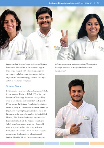 Supporting Higher For the academic year 2022-2023, the Reliance impact on their lives and career trajectories. Reliance different engagement sessions organised. These sessions